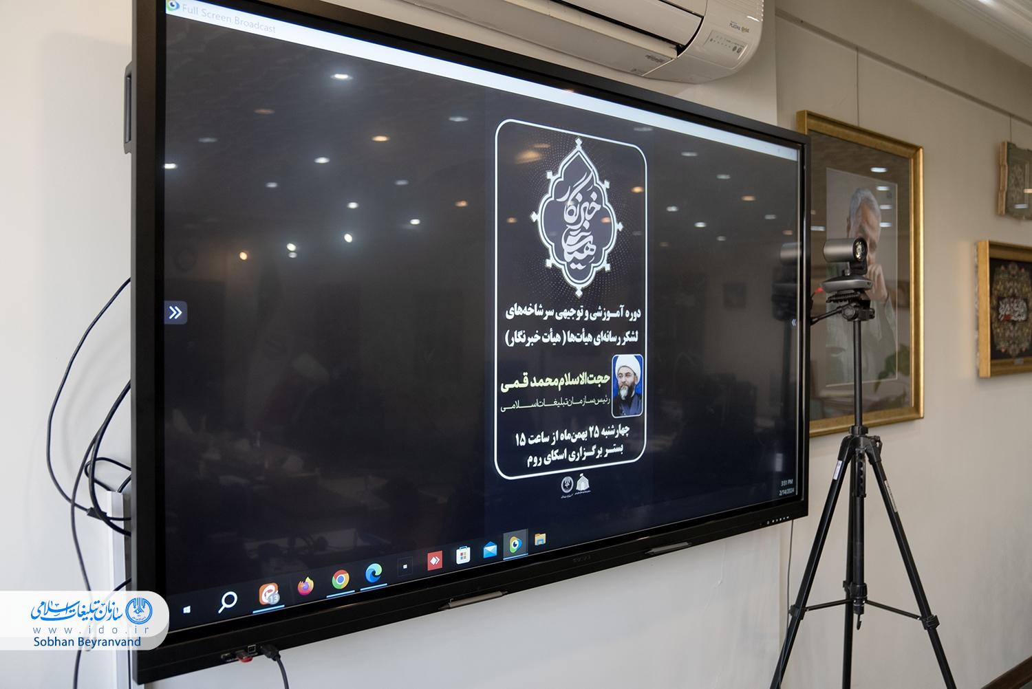 نشست وبیناری دوره آموزشی و توجیهی سرشاخههای لشکر رسانهای هیأتها «هیأت خبرنگار» ظهر امروز ۲۵ بهمنماه، با حضور حجتالاسلام والمسلمین محمد قمی رئیس سازمان تبلیغات اسلامی برگزار شد.