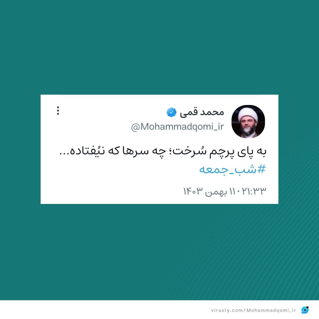 ۱۱ بهمن | حجتالاسلام قمی در صفحه شخصی خود نوشت؛