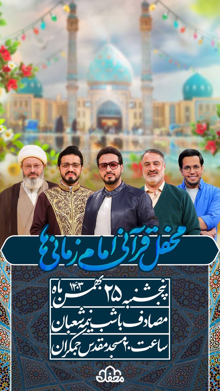 به گزارش روابط عمومی سازمان تبلیغات اسلامی، به مناسبت اعیاد ماه شعبان و همزمان با ولادت حضرت ولیعصر (عج)، محفل قرآنی امام زمانیها با حضور عوامل برنامه تلویزیونی «محفل» در مسجد مقدس جمکران برگزار میشود.