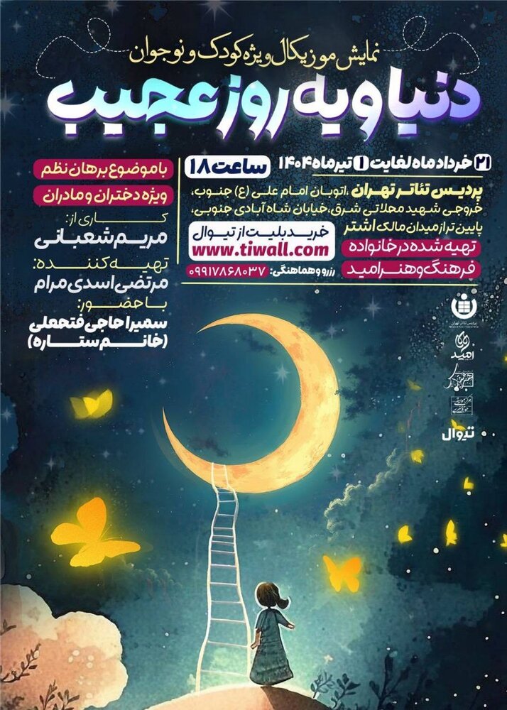 اثر دیگر، نمایش «دنیا و یک روز عجیب» به نویسندگی و کارگردانی مریم شعبانی است که با محوریت برهان نظم و موضوع تولد و زیستن موجودات، مفاهیم خلقت و شگفتیهای هستی را در قالبی آموزشی و سرگرمکننده به کودکان ارائه میدهد. این نمایش با حضور مستقیم کودکان و نوجوانان در تیم تولید و بازیگری، و نیز حضور سمیرا حاج فتحعلی، تجربهای منحصربهفرد در تئاتر متعهد و زنانه خلق کرده است. این نمایش که طراحی آن بر پایه یکی از آلبومهای مرکز موسیقی حوزه هنری انجام شده، از ۲۱ خرداد ماه در سالن اصلی پردیس تئاتر تهران روی صحنه خواهد رفت.
